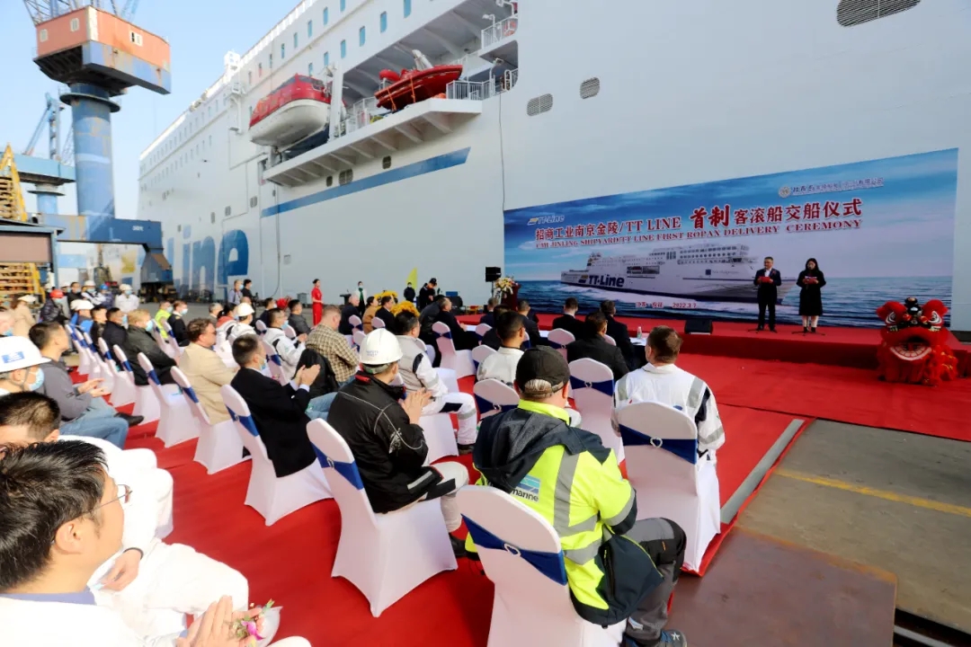 2022年3月7日,Nils Holgersson號最新一代綠色環(huán)保郵輪級客滾船提前順利交付至德國TT-Line船東。該項目由招商工業(yè)南京金陵船廠建造,內(nèi)裝總包工程由德國R&M集團瑞瑪公司的中外員工共同完成。