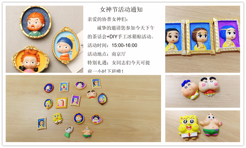 2023年3月8日,值此婦女節(jié)到來之際,協(xié)普不僅為在廠的各位女士準備了暖心的生活禮品,還將大家聚在一起舉辦了輕松愉快的手繪活動?,F(xiàn)場氣氛歡快,大家悠閑地完成了各自的手繪冰箱貼,活動結(jié)束后全體女同志提前下班,開心地結(jié)束了一天的工作。